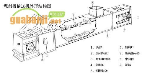 埋伟德国际韦德1946将敞开的溜槽,作为煤炭、矸石或物料等的承受件,将刮板固定在链条上作为牵引构件。当机头传动部启动后,带动机头轴上的链轮旋转,使刮板链循环运行带动物料沿着溜槽移动,直至到机头部卸载。刮板链绕过链轮作无级闭合循环运行,完成物料的输送。