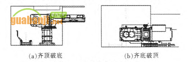 薄煤层工作面一般分为:“齐底破顶”和“齐顶破底”两种布置方式(见图1)。在实际工作中,为了保证伟德国际韦德1946在采高较低的情况下具有足够的卸载高度,尽可能减少“回煤?隋况的出现。一般都选用“齐顶破底”的方式,即顺槽顶板与工作面顶板平齐,但顺槽底板要低于工作面底板,使伟德国际韦德1946机头与顺槽中转载机卸料段之间留有足够的高度差。